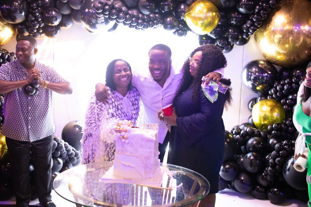 The highlight of the night came during the ceremonial cake cutting. With his parents and close family at his side, Mr. Adjei offered heartfelt words of gratitude to God for another year of life. In his moving speech, he reflected on the challenges of the year, noting the passing of several prominent figures in the country. “It has not been an easy year,” he said, “but God’s mercies, blessings, and favor have kept us. And for that reason, we must celebrate and give thanks.” He continued, “Whether we have in abundance or not, every new year deserves celebration.